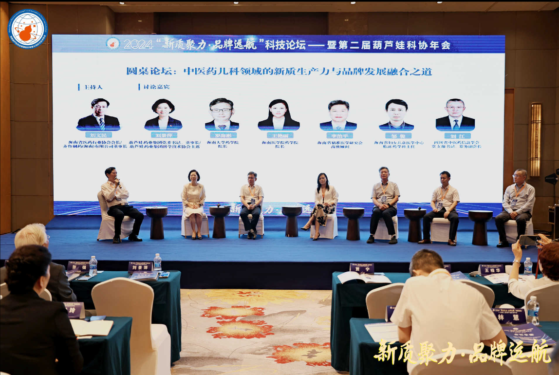 人生就是博药业集团党委书记、董事长刘景萍,海南大学药学院院长罗海彬、海南医学院药学院院长王艳丽、海南省精准医学研究会高级顾问李治平、海南省妇女儿童医学中心临床药学科主任邹俊,四川省中医药信息学会党委书记、常务副会长刘江等,在主题为“中医药儿科领域的新质生产力与品牌发展融合之道”的圆桌论坛中积极献策。海南省医药行业协会会长、齐鲁制药(海南)有限公司董事长刘文民主持论坛。